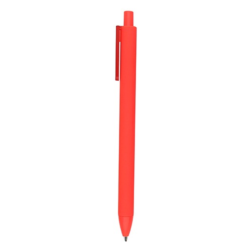 Bolígrafo con acabado rubber, tinta negra, clip de plástico y mecanismo de click.