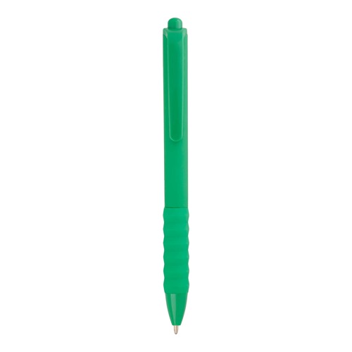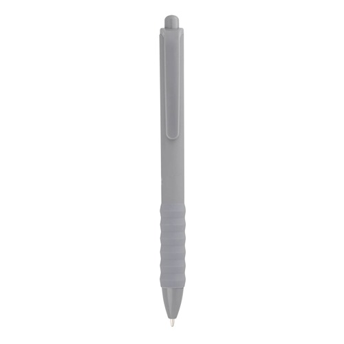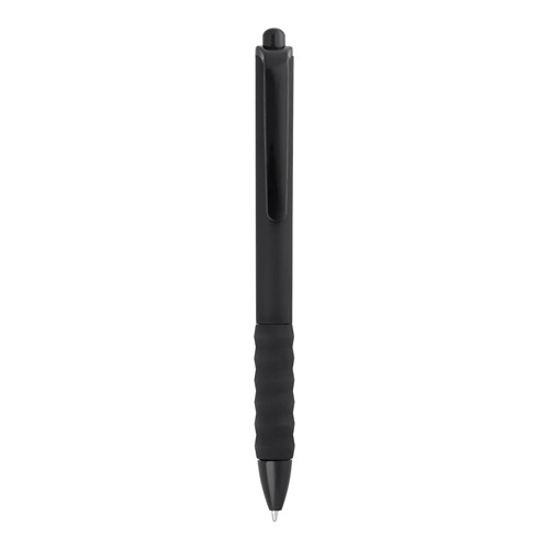 Bolígrafo de plástico con acabado rubber, grip de silicón y mecanismo de click.