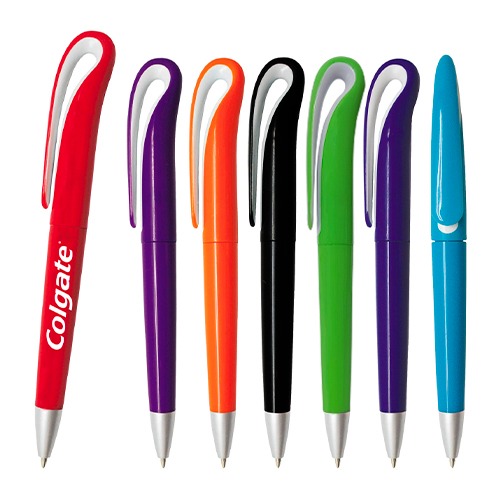Bolígrafo de plástico de color sólido y mecanismo retráctil.